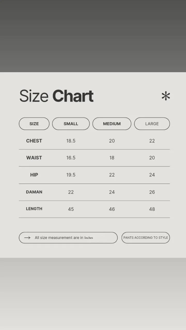 | Number Of Pieces | 3 piece – top + bottom + dupatta |