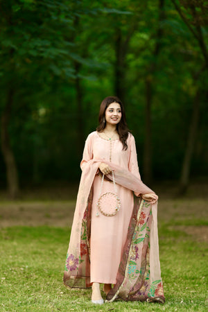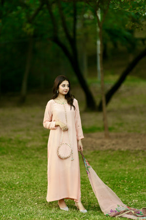 RJF054 Stitched Peach 3pc with potli