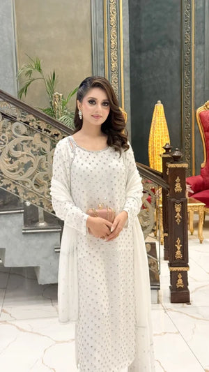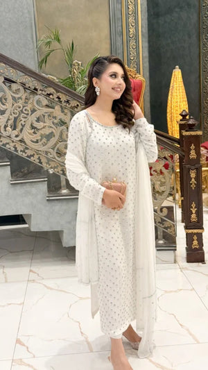 Fabric:Shirt & Trouser White Rawsilk Fabric with Swavorski Handmade